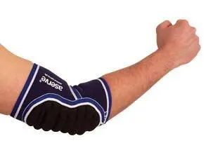 Albuebeskytteren er fremstillet af slidstærkt neopren med forstærkninger på de mest udsatte steder. Den polstrede pude giver optimal stødabsorbering i alle sportsgrene. Den mest brugte af håndboldspillere.