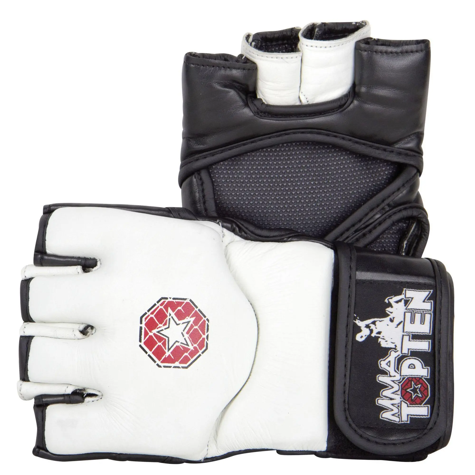 Handskerne af høj kvalitet – overbeviser udvendigt med et blødt læderbetræk over det underopdelte højdensitetsskum. At opdele den beskyttende overflade gør dine hænder ekstremt fleksible i Ultimate Fight-handsken. Så du kan reagere hurtigere med hurtige skift mellem at gribe og slå og kan gøre kampen eksplosiv.