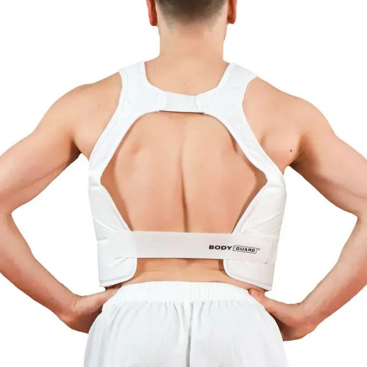 Hayashi kampvest er lavet flad og kan let bæres under tøjet. Især det elastiske fikseringssystem efterlader vesten behagelig på huden.