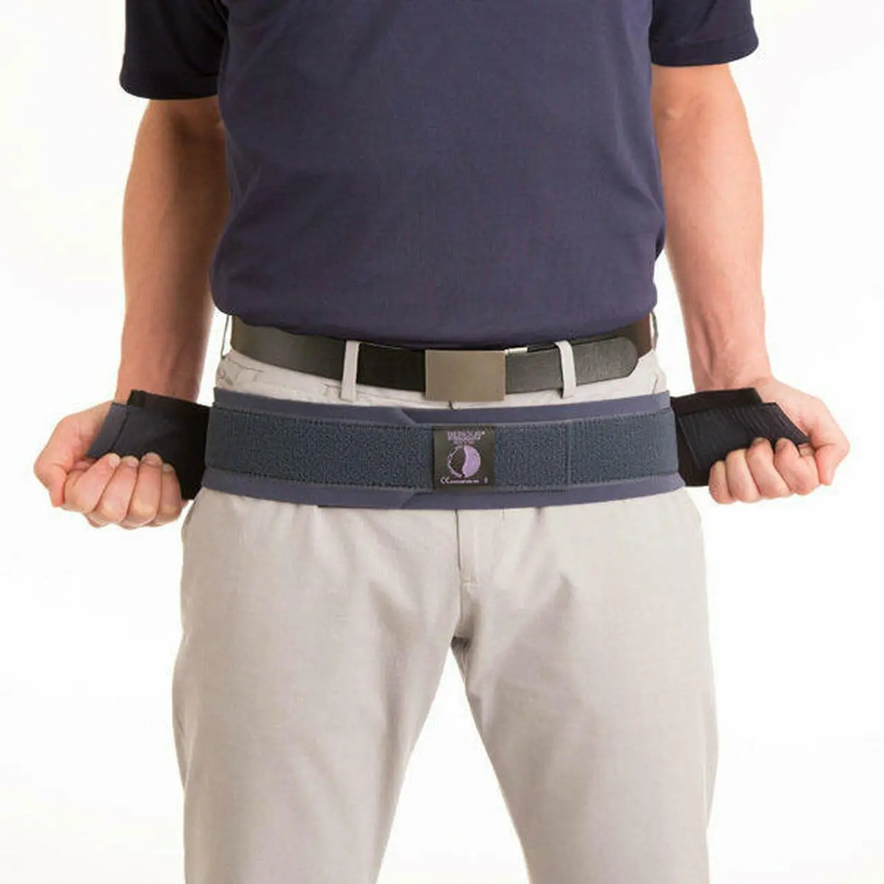 Placer bæltet lige over skambenet og lige under de to fremspring, som er fortil på bækkenkanten. Bæltet strammes til omkring bækkenet, hvorefter man trækker i de to elastiske bånd i fremadgående retning for en endelig fiksering.